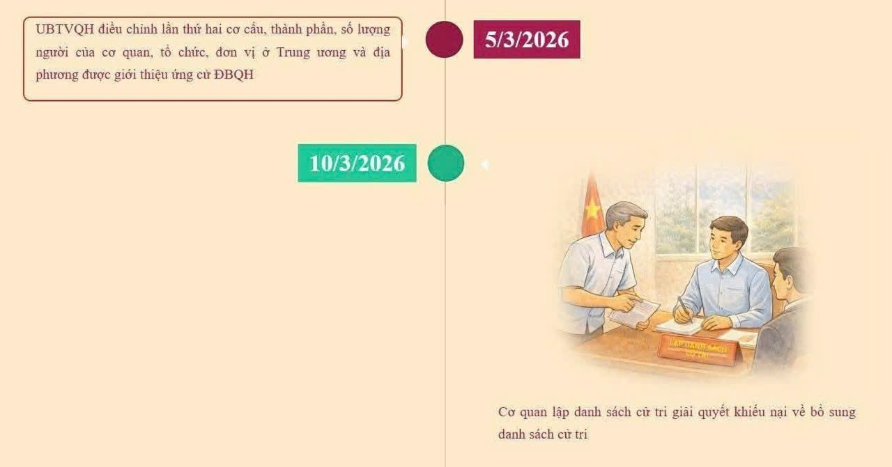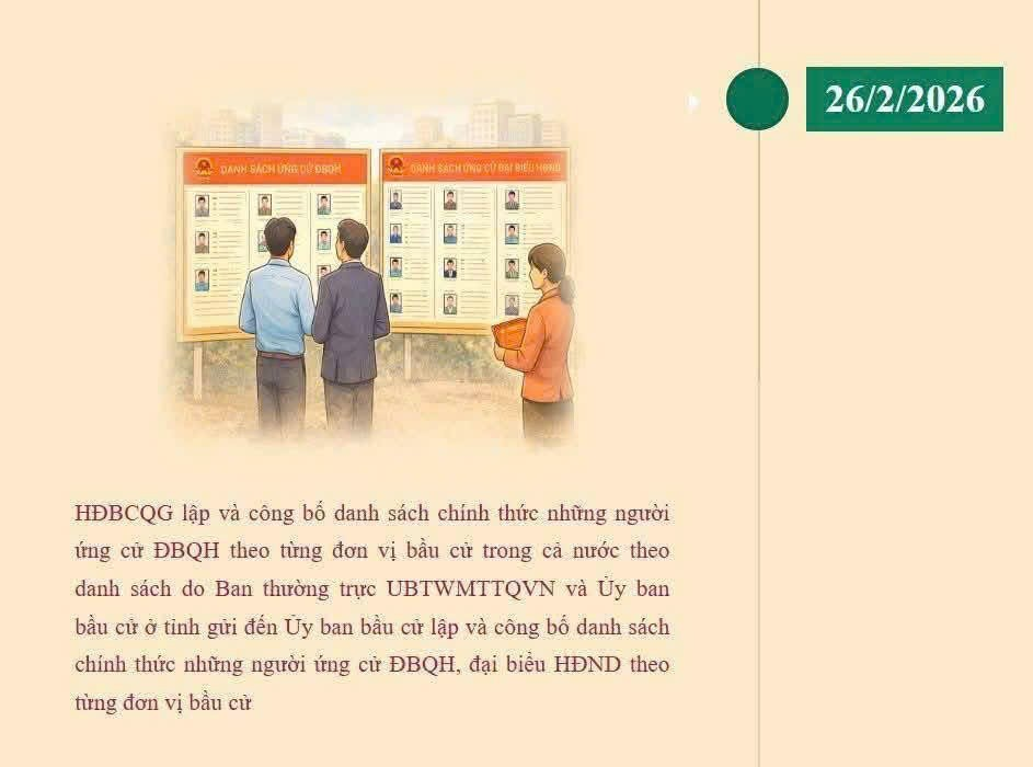 Ngày 15/3/2026 là Ngày toàn dân đi bầu cử ĐBQH khoá XVI và đại biểu HĐND các cấp nhiệm kỳ 2026-2031. Cuộc bầu cử ĐBQH khóa XVI và đại biểu HĐND các cấp nhiệm kỳ 2026-2031 là sự kiện chính trị trọng đại của đất nước diễn ra ngay sau Đại hội lần thứ XIV của Đảng. Đây là đợt sinh hoạt dân chủ sâu rộng trong nhân dân nhằm phát huy quyền làm chủ, lựa chọn những người tiêu biểu, xứng đáng, đại diện cho ý chí, nguyện vọng và quyền làm chủ của nhân dân. Dưới đây là các mốc thời gian trước khi diễn ra cuộc bầu cử ĐBQH khóa XVI và đại biểu HĐND các cấp nhiệm kỳ 2026-2031.