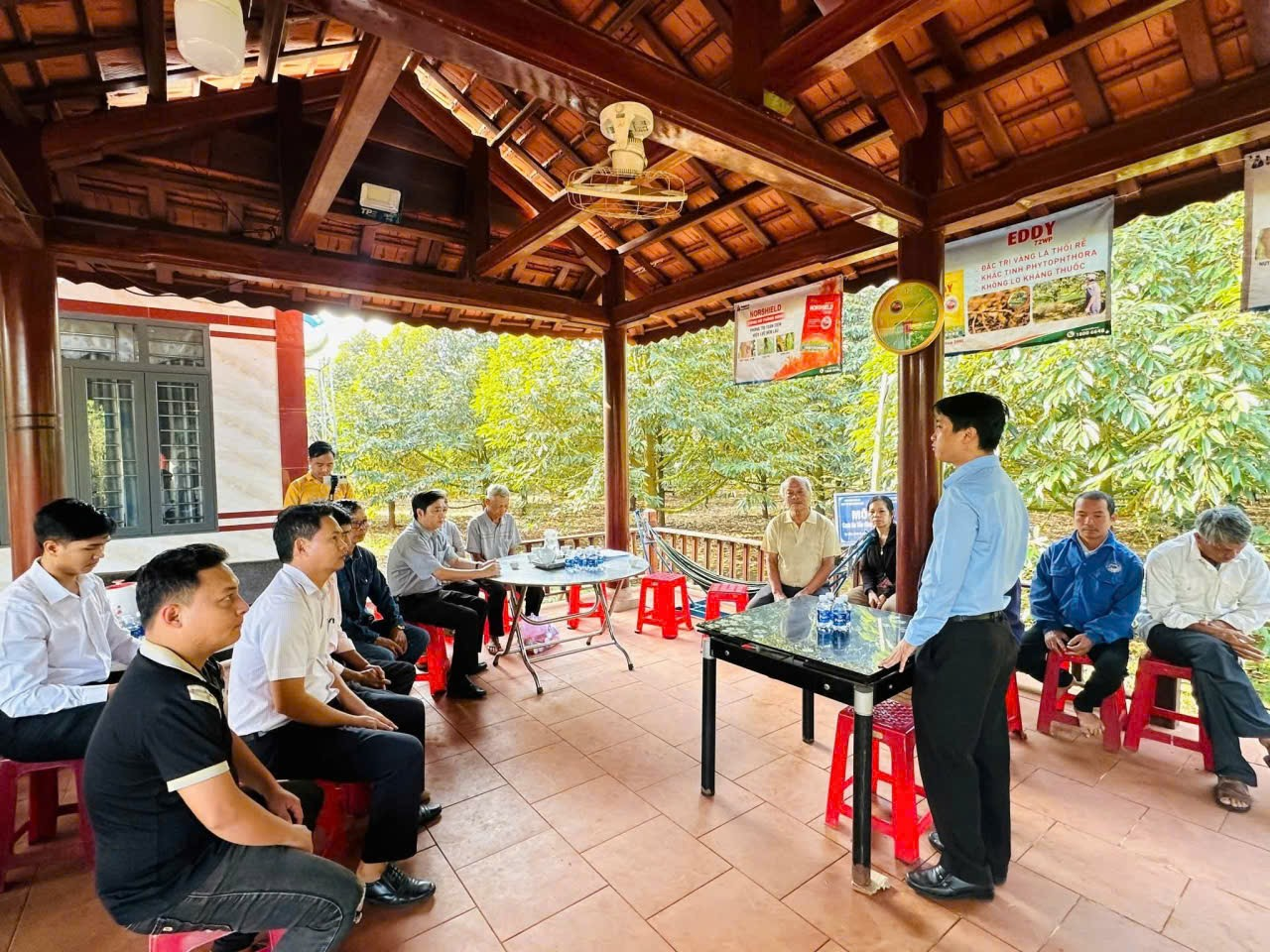 Đồng chí cũng đề nghị Hội Nông dân xã và HTX phối hợp chặt chẽ trong việc tập huấn kỹ thuật, giám sát việc sử dụng vốn và mở rộng liên kết doanh nghiệp, để xây dựng chuỗi giá trị sầu riêng của Xuân Hòa theo hướng bền vững – minh bạch – có thương hiệu.