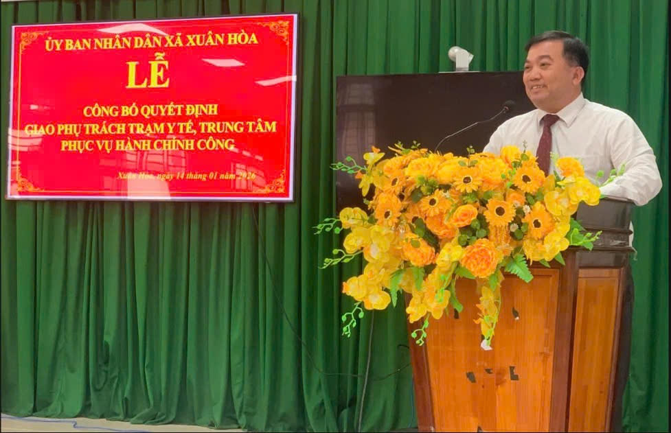 Chiều ngày 14/01/2026, UBND xã Xuân Hòa tổ chức Lễ công bố quyết định thành lập Trạm Y tế xã; quyết định tiếp nhận và bố trí công tác đối với viên chức Trạm Y tế xã; quyết định giao phụ trách Trạm Y tế xã và Trung tâm Phục vụ hành chính công xã Xuân Hòa, đối với các đồng chí đủ tiêu chuẩn, năng lực theo quy định. Đây là bước kiện toàn tổ chức bộ máy, nhằm đảm bảo hoạt động chuyên môn được thông suốt, hiệu quả, đáp ứng yêu cầu phục vụ Nhân dân trong tình hình mới.