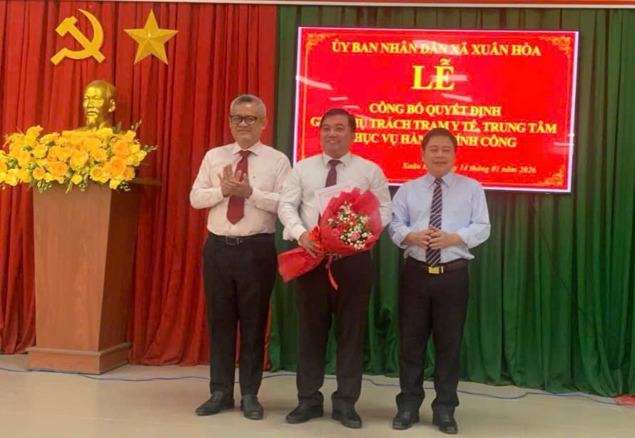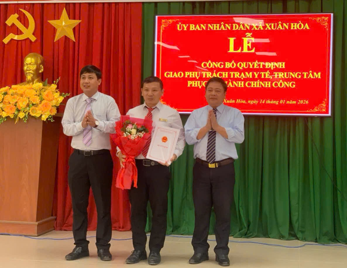 Buổi lễ cũng công bố quyết định giao nhiệm vụ phụ trách, điều hành hoạt động của Trạm Y tế xã Xuân Hòa cho ông Nguyễn Đức Tiến - PCT UBND xã giữ chức vụ Giám đốc kiêm nhiệm Trạm Y tế xã Xuân Hòa kể từ ngày 15/01/2026 cho đến khi kiện toàn nhân sự lãnh đạo Trạm y tế xã Xuân Hòa theo quy định. Cùng dịp này, UBND xã Xuân Hòa công bố quyết định tiếp nhận và bố trí 38 viên chức của Trung tâm Y tế khu vực Xuân Lộc trực thuộc Sở Y tế tỉnh Đồng Nai đến nhận công tác tại Trạm Y tế xã Xuân Hòa trực thuộc UBND xã Xuân Hòa kể từ ngày 01/01/2026. Nhiệm vụ cụ thể do lãnh đạo Trạm Y tế xã phân công.