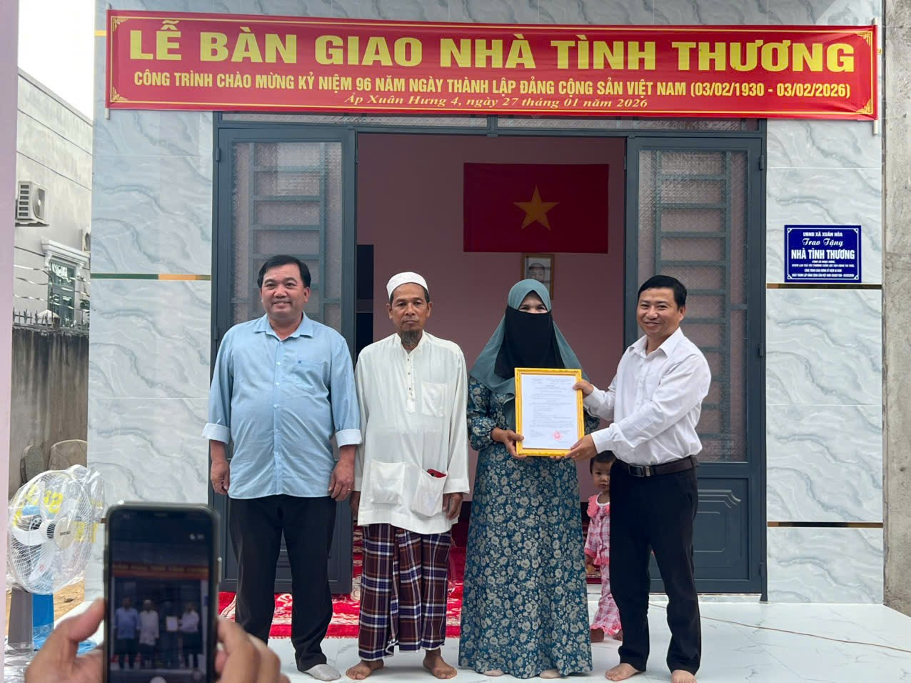 Chiều 27/01/2026, UBND xã Xuân Hòa tổ chức Lễ bàn giao công trình nhà tình thương tại tổ 8, ấp Xuân Hưng 4, đây là công trình chào mừng kỷ niệm 96 năm ngày thành lập Đảng Cộng sản Việt Nam (03/02/1930-03/02/2026).